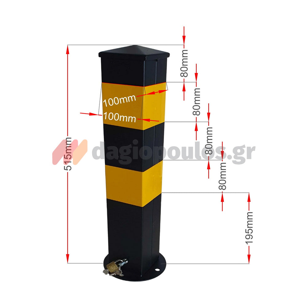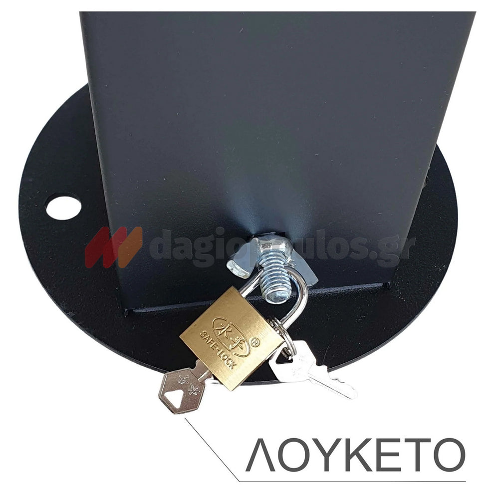 Κολωνάκι Μεταλλικό Τετράγωνο Αποσπώμενο Απαγόρευσης Στάθμευσης & Οριοθέτησης Με Πυραμιδικό Τελείωμα (Κώνο) & Λουκέτο