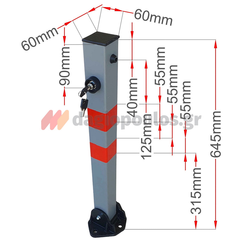 Κολωνάκι Μεταλλικό Στρογγυλό "Σπαστό" Απαγόρευσης Στάθμευσης & Οριοθέτησης Γκρι Με Κλειδαριά 65cm