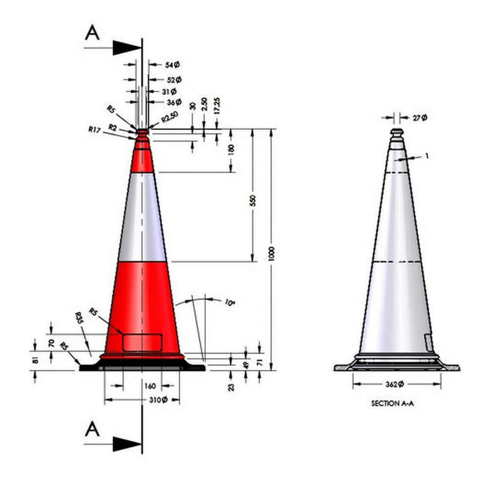- κώνος με βαριά λαστιχένια βάση διαθέσιμος σε 50cm, 75cm και 100cm.