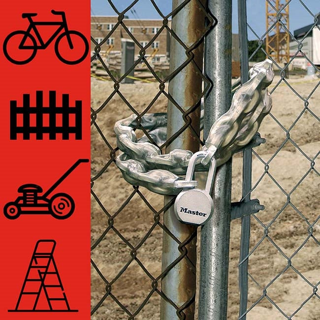 MASTER LOCK ΑΛΥΣΙΔΑ ΑΤΣΑΛΙΝΗ ΜΕ ΕΠΕΝΔΥΣΗ ΒΙΝΥΛΙΟΥ Οι αλυσίδες ασφαλείας της MasterLock αποτελoύν μια λύση προστασίας & ασφάλειας. Τετράγωνης διατομής από ενισχυμένο ατσάλι με επιπλέον στρώση ελαστικού βινυλίου Η ατσάλινη αλυσίδα με κάλυμμα βινυλίου διαθέτει σκληρούς χαλύβδινους συνδέσμους που προσφέρουν αντοχή στην κοπή και το πριόνισμα. Ο τετραγωνισμένος σχεδιασμός του συγκολλημένου χαλύβδινου συνδέσμου παρέχει ανώτερη αντίσταση ενάντια στο σπάσιμο. Το προστατευτικό κάλυμμα βινυλίου προστατεύει από γρατσουνιές. Χαρακτηριστικά : Κατασκευασμένη από ενισχυμένο ατσάλι Τετράγωνος κρίκος για μεγαλύτερες αντοχές Προστασία με εν θερμω βινυλικό στρωμα που δεν επιτρέπει γρατζουνιές & γδαρσίματα στις επιφάνειες Tετραγωνισμένος σχεδιασμός των συνδέσμων για μεγαλύτερη αντοχή Κάλυμμα βινυλίου για αποφυγή γρατσουνιών Για εσωτερική και εξωτερική χρήση Ιδανική για φράχτες, πύλες, ποδήλατα, εργαλεία, ντουλάπες και άλλα δίτροχα Επίπεδο ασφάλειας Masterlock : 10 Διαστάσεις : 10mm x 100cm