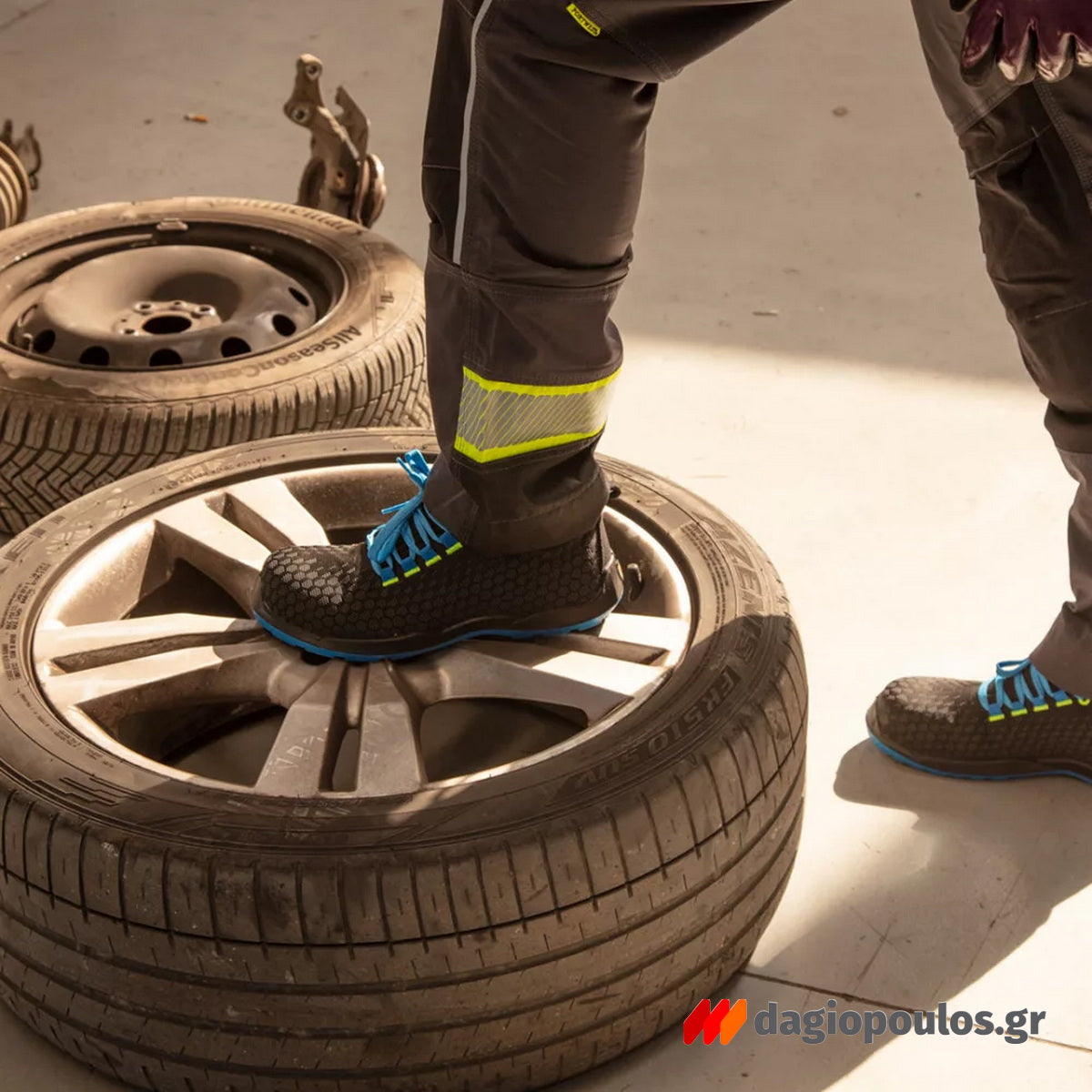 - Χαμηλό, ελαφρύ ασφαλείας υπόδημα S3 με αντιολισθητική εξωτερική σόλα SRC και αδιάβροχο επάνω μέρος τεχνικού υφάσματος.