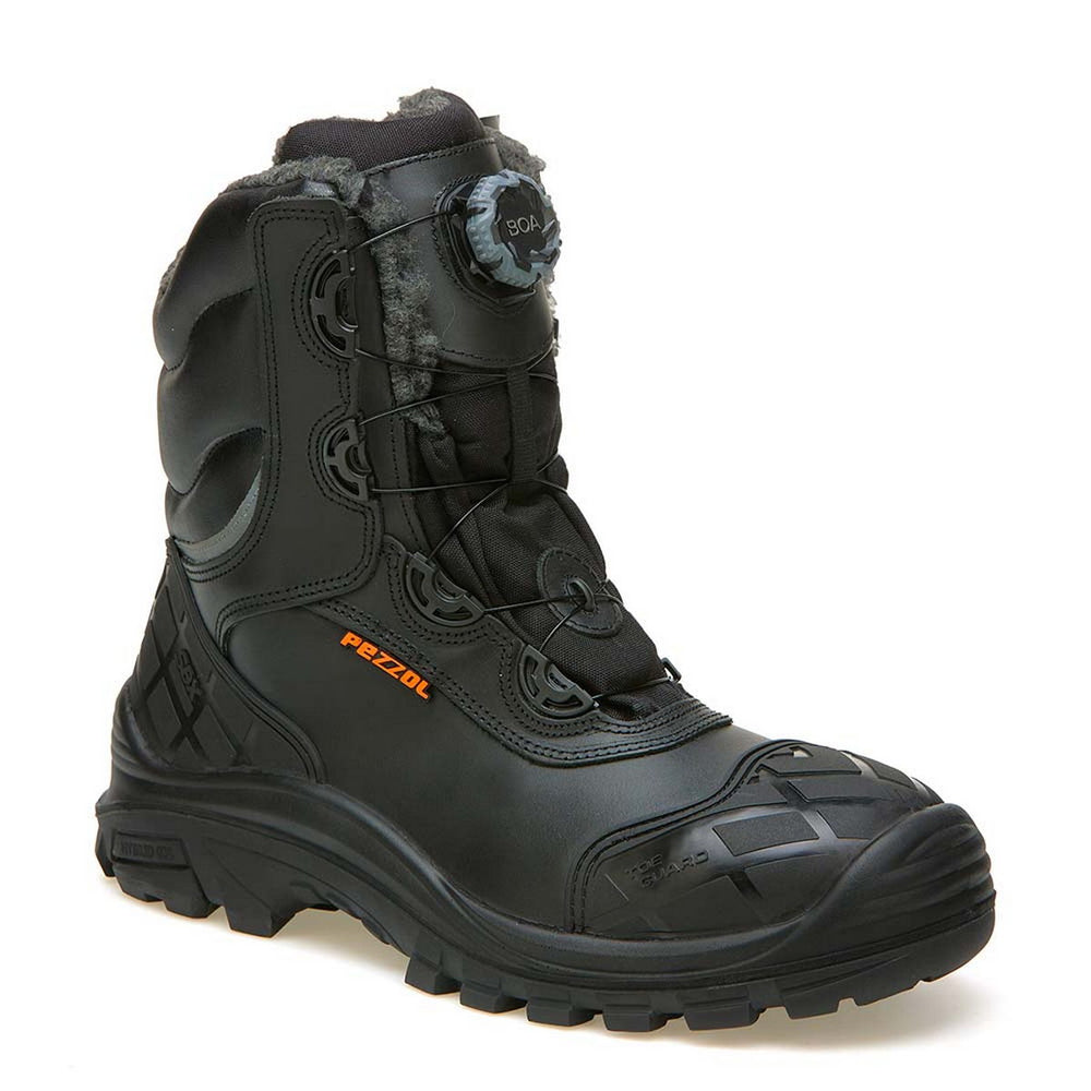 Μπότα ασφαλείας, κατάλληλη για ψυχρά κλίματα, κατασκευασμένη από δέρμα Idrotech με υψηλή αντοχή στο νερό. Το σύστημα Boa® Fit System αποτελείται από μικρο-ρυθμιζόμενο καντράν κορδονιών, έναν εξαιρετικά ισχυρό ελαφρύ και χαμηλής τριβής οδηγό κορδονιών, σχεδιασμένο για εύκολη, ακριβή και ασφαλή ρύθμιση. Τα πρόσθετα ένθετα TPU στον αστράγαλο και στην μπροστινή περιοχή εξασφαλίζουν μέγιστη προστασία από χτυπήματα, τριβές και υγρά. Εσωτερική θερμομονωτική επένδυση από μαλλί αρνιού και WINTHERM®. Το ύφασμα που αναπνέει χαρακτηρίζεται από ένα μικροφίλμ αλουμινίου, το οποίο επιτρέπει τη διατήρηση της θερμότητας στα χειμερινά υποδήματα ακόμη και σε πολύ χαμηλές θερμοκρασίες. Το υβριδικό Pu-Rubber Ice Grip δύο συστατικών εξασφαλίζει καλή ευελιξία και άνεση σε θερμοκρασίες κάτω του μηδενός. Η σόλα τεχνολογίας Ice Grip υλοποιείται με ίνες στο μείγμα καουτσούκ που επιτρέπει την αποστράγγιση και την απορρόφηση υγρών σε παγωμένες επιφάνειες, ώστε να εγγυάται εξαιρετική αντοχή στην ολίσθηση. Αντοχή στην ολίσθηση δοκιμασμένη στα εργαστήρια SATRA σε μεταλλική σχάρα και ξύλινες σανίδες σκαλωσιάς. Προστασία δακτύλων από ελαφρύ μη μεταλλικό πολυμερές Compo200
