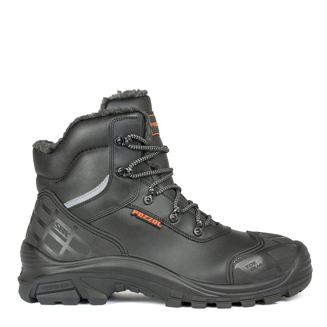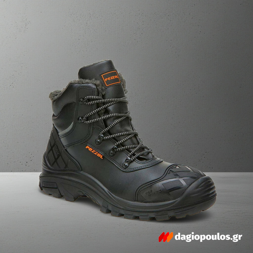 Μπότα αστραγάλου ασφαλείας, κατάλληλη για κρύα κλίματα, κατασκευασμένη από ολόσωμο δέρμα Idrotech με υψηλές ιδιότητες αντίστασης στο νερό.