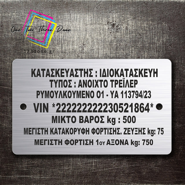 Πινακίδα VIN κατάλληλη για τρείλερ, μπαγκαζιέρες, ρυμούλκες με την μεθοδο χαραξης laser engrave χρώματος inox brush
