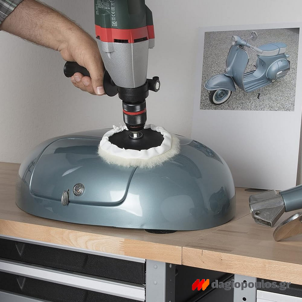 Wolfcraft κάλυμμα γυαλίσματος με κορδόνι σύσφιξης ιδανικό για στίλβωση και λουστράρισμα βερνικιών, μη σιδηρούχων μετάλλων και ανοξείδωτου χάλυβα με χρήση αλοιφών τριψίματος και στίλβωσης.