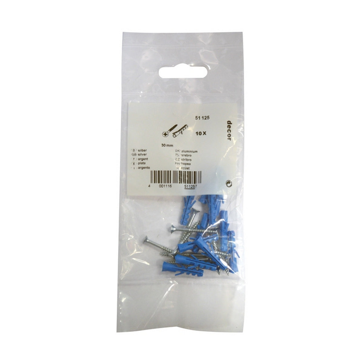 Διαστάσεις : Βύσμα Φ 5 mm, βίδα 3 x 30 mm, 10 τεμ.