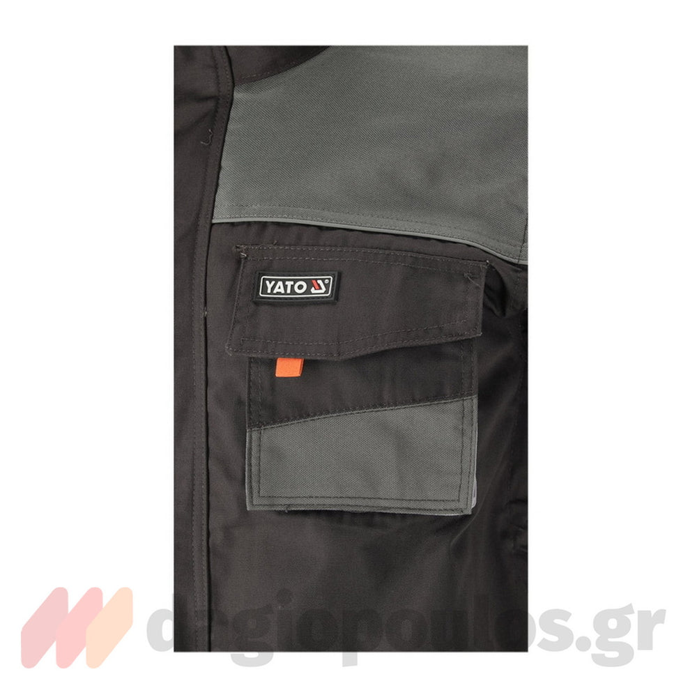 Yato μπουφάν εργασίας με οκτώ τσέπες, αερισμό κάτω από τις μασχάλες και πολλά πρόσθετα από ανθεκτικό στην τριβή ύφασμα σε σημεία που είναι πιο εκτεθειμένα σε ζημιές.