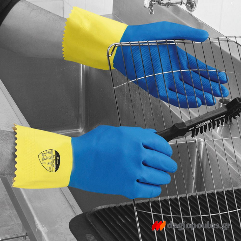 - Διπλής επίστρωσης λάτεξ για ενισχυμένη ανθεκτικότητα και ευρύ φάσμα χημικής αντίστασης.
