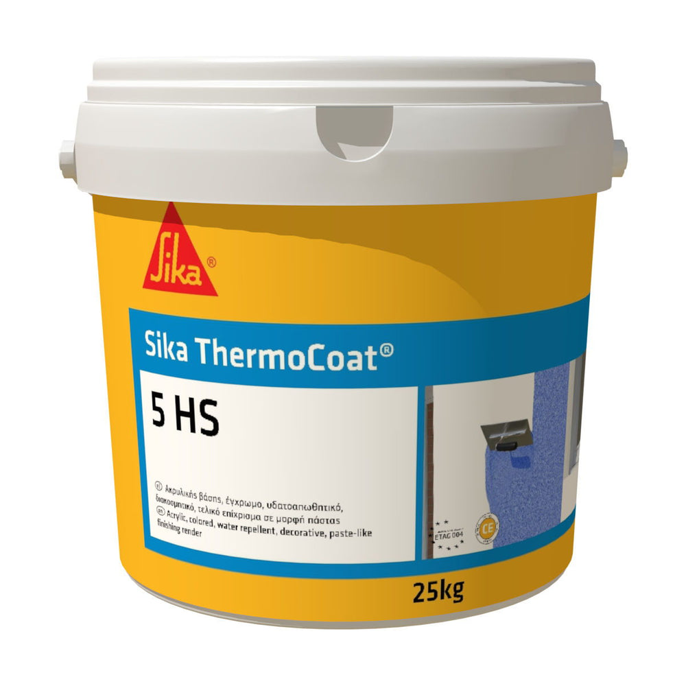 Το Sika ThermoCoat®-5 HS είναι ακρυλικός υδατοαπωθητικός τελικός σοβάς σε μορφή πάστας, έτοιμος προς χρήση, σχεδιασμένος για συστήματα εξωτερικής θερμομόνωσης ETICS και για προστασία όψεων.