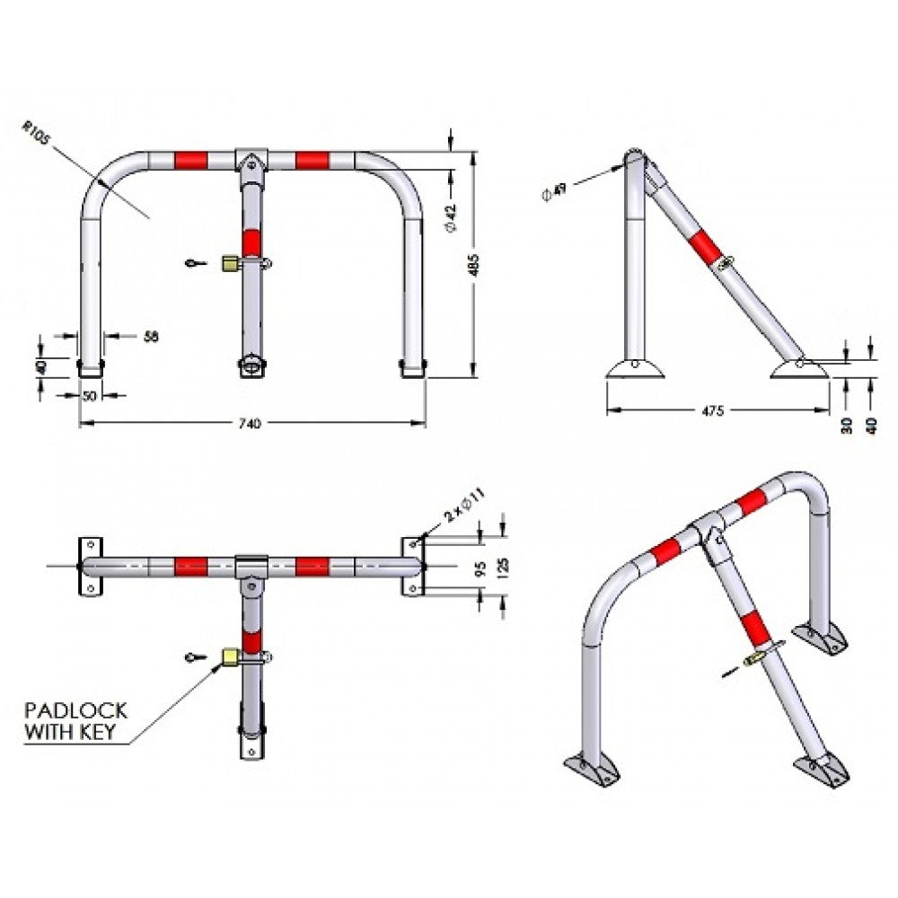 Η μπάρα στάθμευσης HSU3L-8050-4218-GAL είναι αξιόπιστη, στιβαρή, με λουκέτο και 3 πόδια.