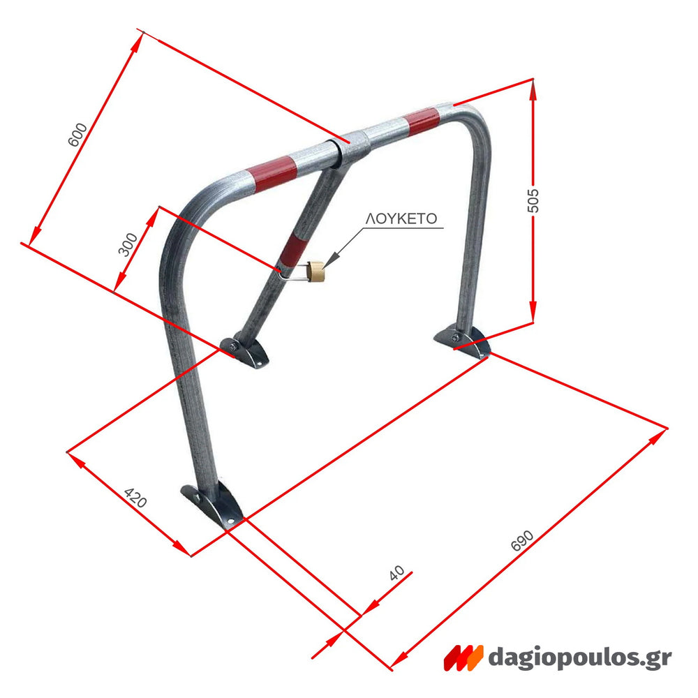 Μπάρα Παρεμπόδισης Παρκαρίσματος Αρθρωτή Γαλβανιζέ Τύπου U Με 3 Πόδια Οικονομική
