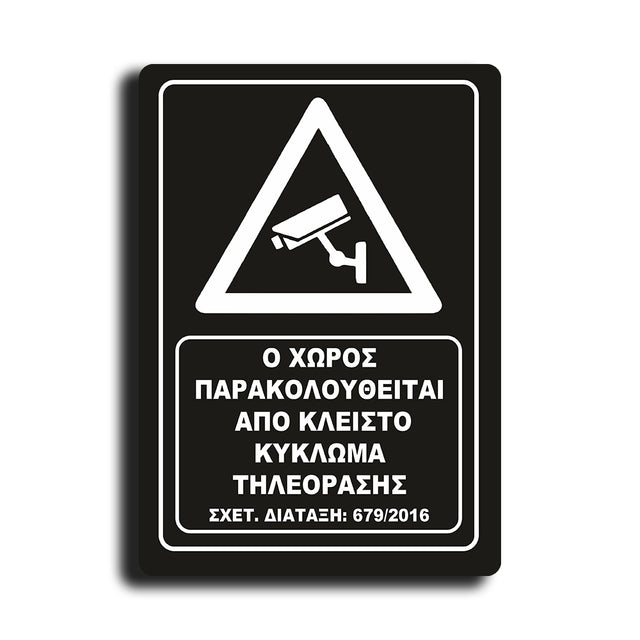 Πινακίδα Σήμανσης Παρακολούθησης Aκρυλικό Plexiglass "Ο ΧΩΡΟΣ ΠΑΡΑΚΟΛΟΥΘΕΙΤΑΙ” Μαύρο 200mm x 290mm