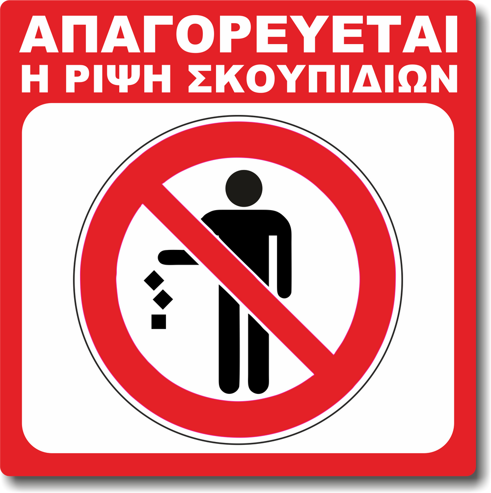 Πινακίδα Σήμανσης Απαγόρευσης PVC "ΑΠΑΓΟΡΕΥΕΤΑΙ Η ΡΙΨΗ ΣΚΟΥΠΙΔΙΩΝ" 150mm x 150mm
