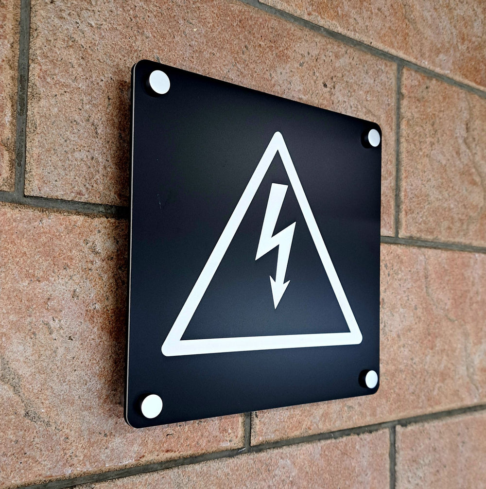 Πινακίδα Σήμανσης Ακρυλικό Plexiglass "ΠΡΟΣΟΧΗ ΚΙΝΔΥΝΟΣ ΡΕΥΜΑ" ΜΑΥΡΟ 200mm x 200mm Με Αποστάτες