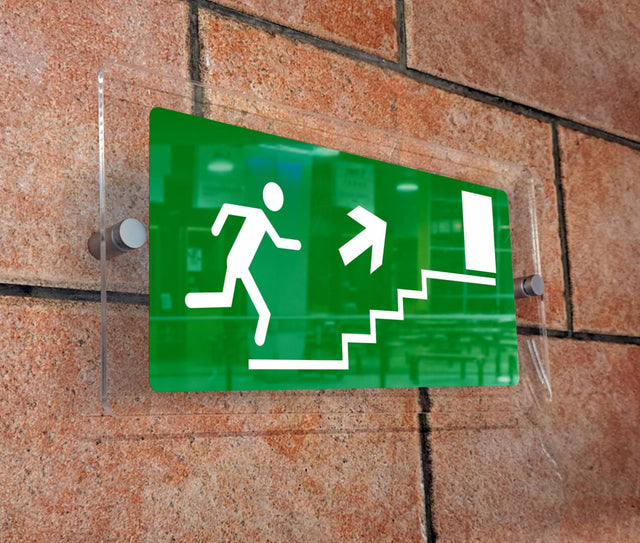 Πινακίδα Σήμανσης Κατεύθυνσης Aκρυλικό Plexiglass "ΕΞΟΔΟΣ ΚΙΝΔΥΝΟΥ ΣΚΑΛΕΣ ΠΑΝΩ” 150mm x 300mm