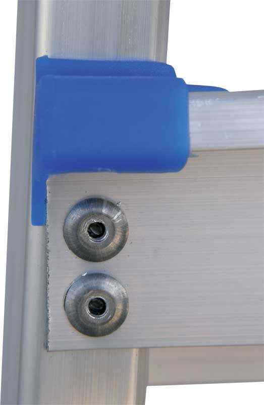 Έχει διαγραμμισμένα σκαλοπάτια αλουμινίου με διπλά πριτσίνια για σταθερό πάτημα και αλουμινένια λαμάκια (κουμπάσο) για εύκολο άνοιγμα και σταθερότητα.