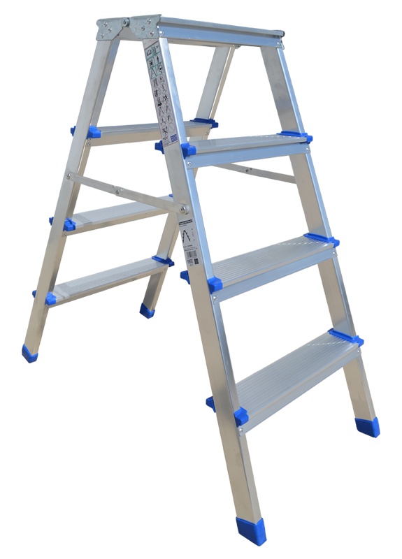 Σκαλάκι αλουμινίου με σκαλοπάτια και από τις δυο πλευρές, ιδανικό για οικιακή και ημιεπαγγελματική χρήση, κατασκευασμένο σύμφωνα με τα ευρωπαϊκά πρότυπα ΕΝ131.