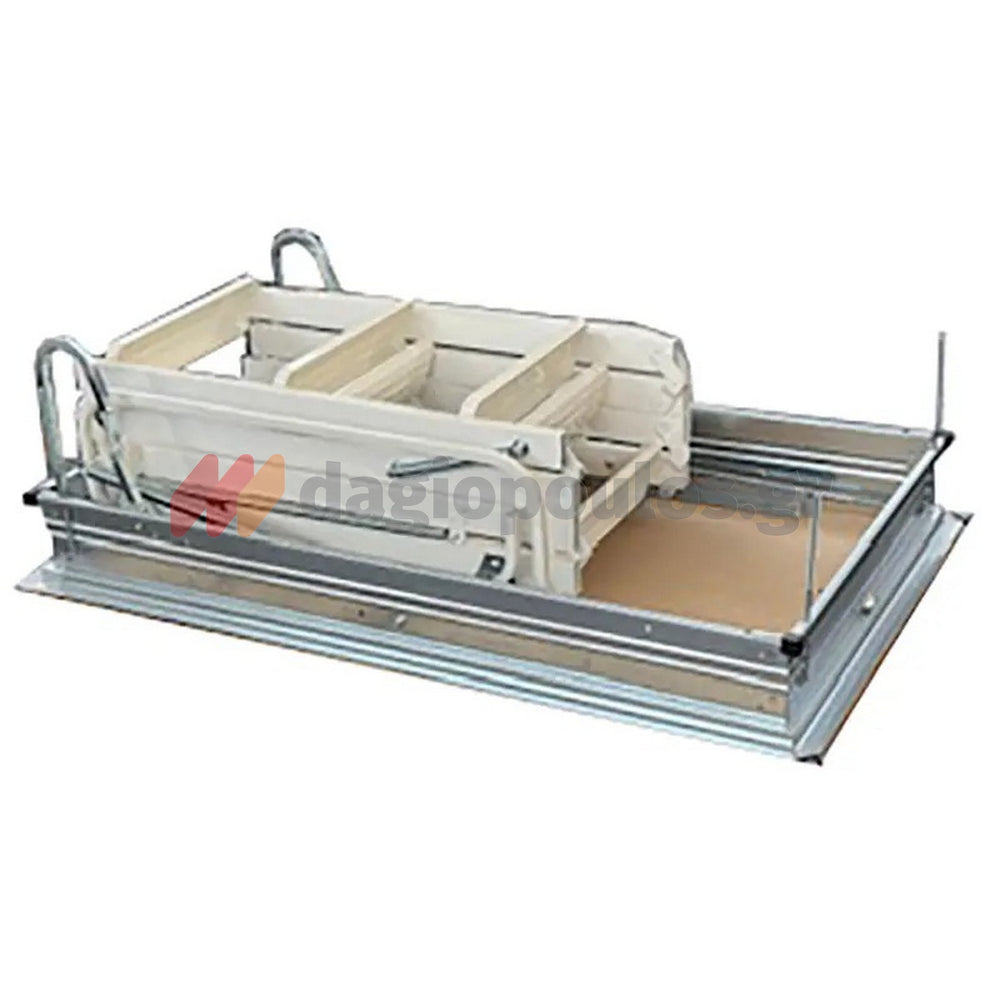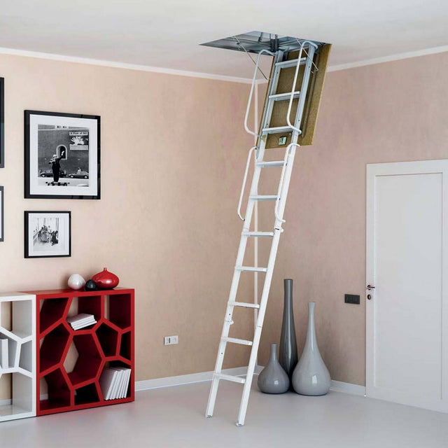 Αρθρωτή σκάλα σοφίτας από γαλβανισμένο χάλυβα με φέρουσα 150 kg, ομαλή λειτουργία και κλειστό πάχος 32 cm για καθαρή αισθητική.