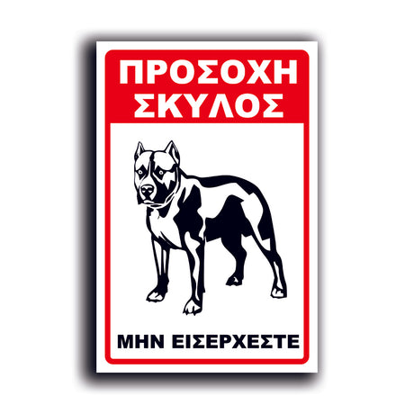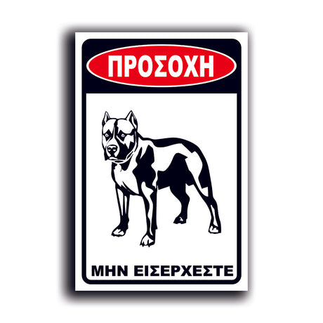 Πινακίδα Σήμανσης PVC "Προσοχή Σκύλος Pitbull" 200mm x 300mm