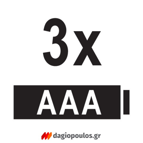 - Μπαταρία : 3 × AAA (1,5V) ή 3 × AAA NiMH (1,2V)