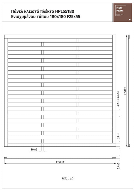 Πάνελ Κλειστό Ξύλινο Standard Ύψους 180cm 180cm x 180cm