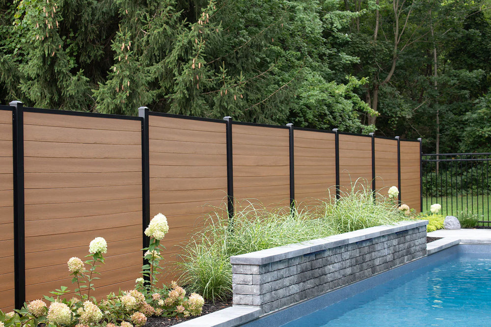 Συνθετικό WPC περίφραξης εξωτερικού χώρου που αποτελείται από 55% ξύλο και 35% HDPE και 10% ρητίνες, UV σταθεροποιητές κλπ.