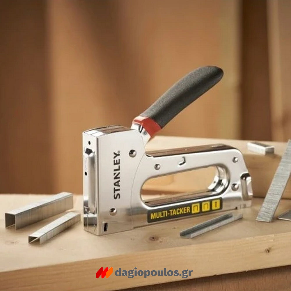 Το Stanley STHT6‑70410 είναι ένα στιβαρό και ευέλικτο πολυεργαλείο στερέωσης, σχεδιασμένο να υποστηρίζει τρεις τύπους αναλωσίμων με μια συσκευή: συρραφές, λεπτές βίδες (brad pins) και καρφιά (nails), καθιστώντας το κατάλληλο για ελαφριές έως μέτριες εφαρμογές σε υφάσματα, ψάθες, ταπετσαρίες, μονώσεις, και μεμβράνες.