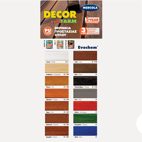 Mercola DECOR XYLOFARM AQUA Bερνίκι Eμποτισμού Εξωτερικών Ξύλων Νερού ΕΛΙΑ