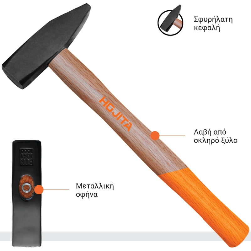 Διαθέτει εργονομική ξύλινη λαβή για άνετο κράτημα και απορρόφηση κραδασμών, ενώ η κεφαλή του είναι κατασκευασμένη από σφυρηλατημένο χάλυβα υψηλής αντοχής, ιδανική για χτυπήματα ακριβείας, διαμόρφωση μετάλλων και μηχανουργικές εργασίες.