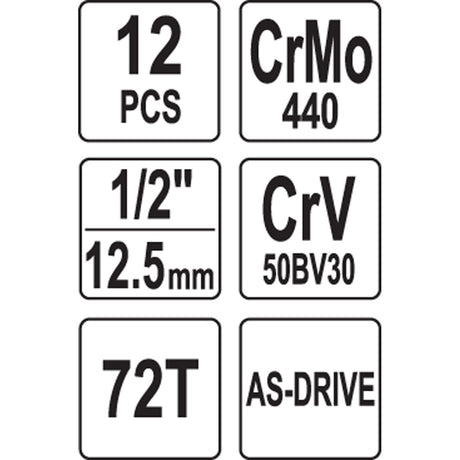 Yato YT-38821 Μανέλα Με Καστάνια 12" & Καρυδάκια Σετ 12 Τεμ