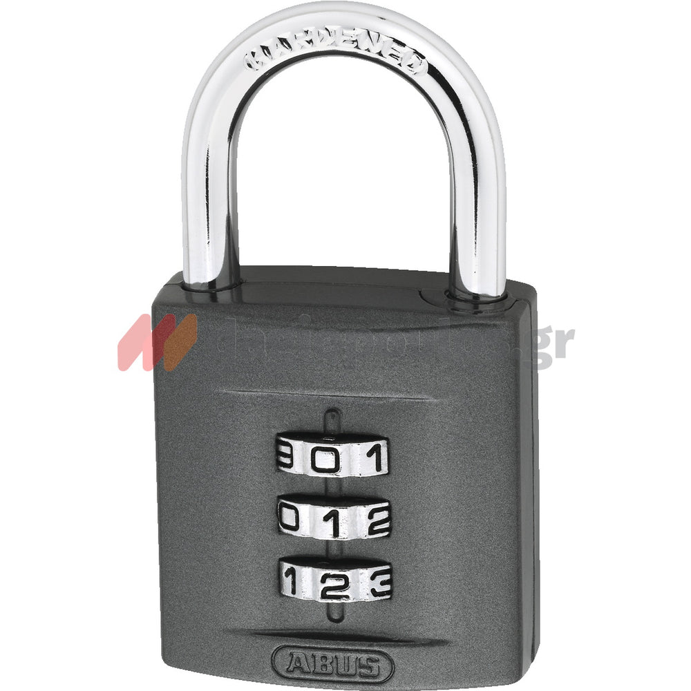 Η κλειδαριά διατίθεται σε τριψήφιο, τετραψήφιο και πενταψήφιο κωδικό ενώ ο λαιμός κλείνει με διπλή κλειδαριά.