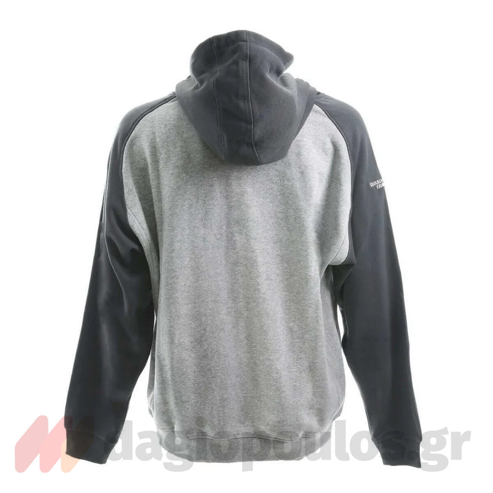 - Το φούτερ με κουκούλα σε γκρι και μαύρο σχεδιάστηκε για καθημερινή εργασιακή χρήση.