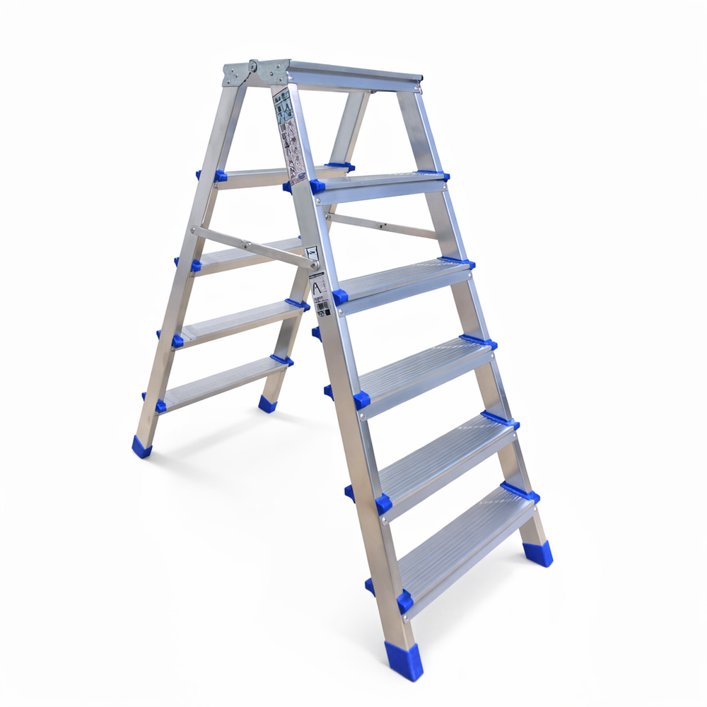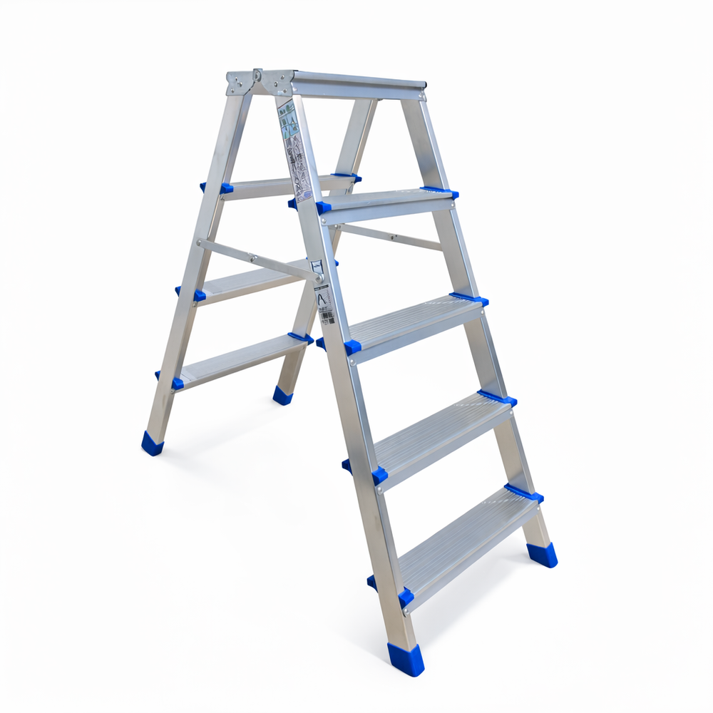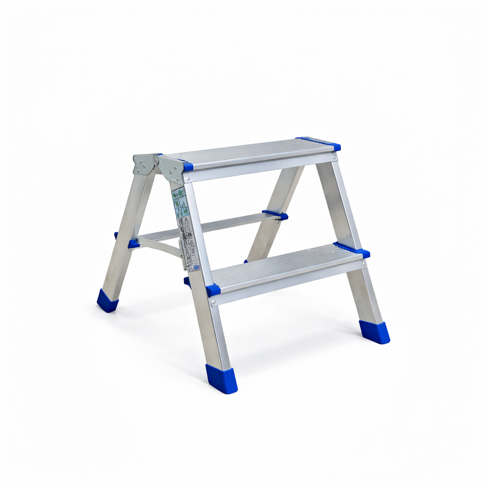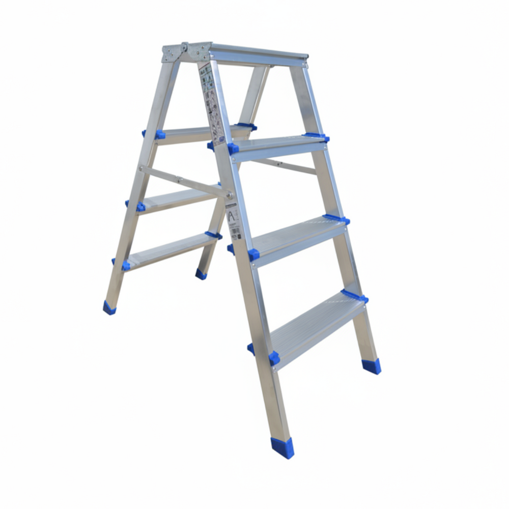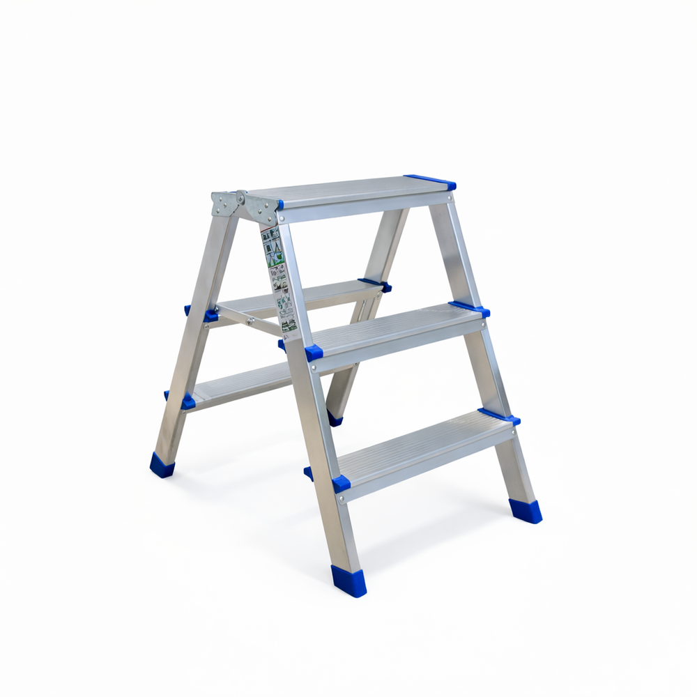 Σκαλάκι αλουμινίου με σκαλοπάτια και από τις δυο πλευρές, ιδανικό για οικιακή και ημιεπαγγελματική χρήση, κατασκευασμένο σύμφωνα με τα ευρωπαϊκά πρότυπα ΕΝ131.